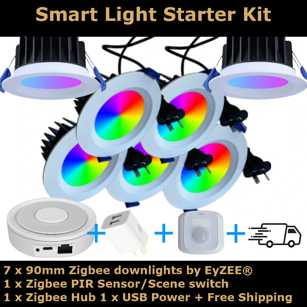 Get started with Zigbee colour smart downlights 90mm and 70mmThis smart starter kit has everything you need to get started with Zigbee 90mm downlights